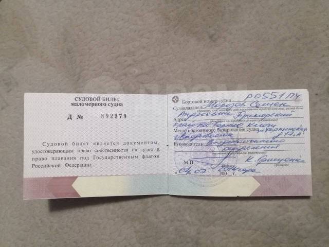 Продам судовой билет без жилеза. Корпус без номера двигатель без номера. Стоит на учёте.